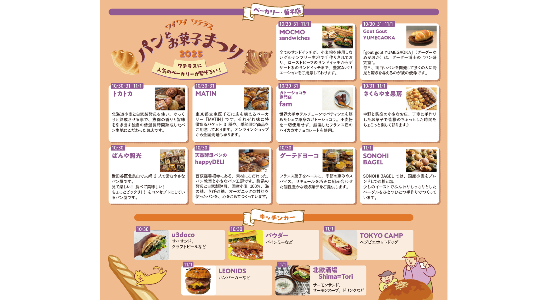 店 舗:ベーカリー・菓子店15店舗、3日間のべ24店舗が出店します。