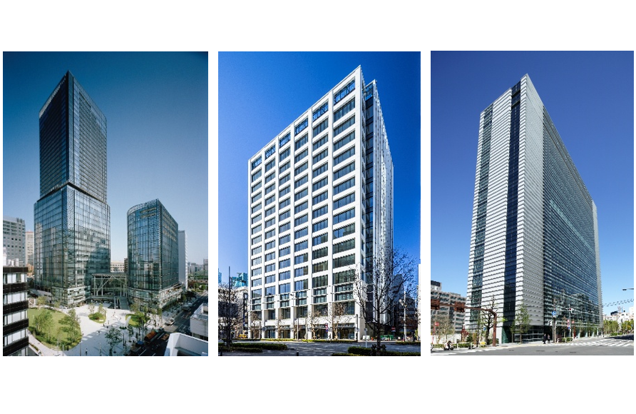 (左)ワテラス、(中)新虎安田ビル、(右)錦町トラッドスクエア